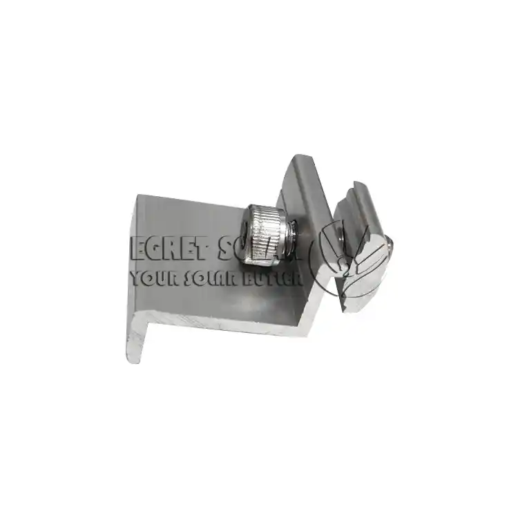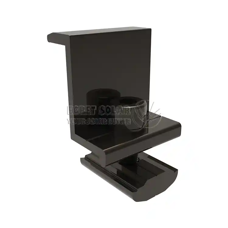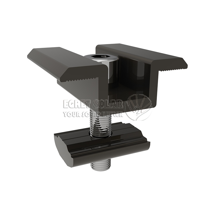The Концевые зажимы изЦапля СолнечнаяКак и блок среднего давления, он должен соответствовать толщине рамы компонента (обычно 30-40 мм).ИндивидуальныеВ соответствии с различными инженерными решениями он изготовлен из анодированного алюминиевого сплава, чтобы избежать коррозии рамы компонента и одновременно играть изолирующую роль.